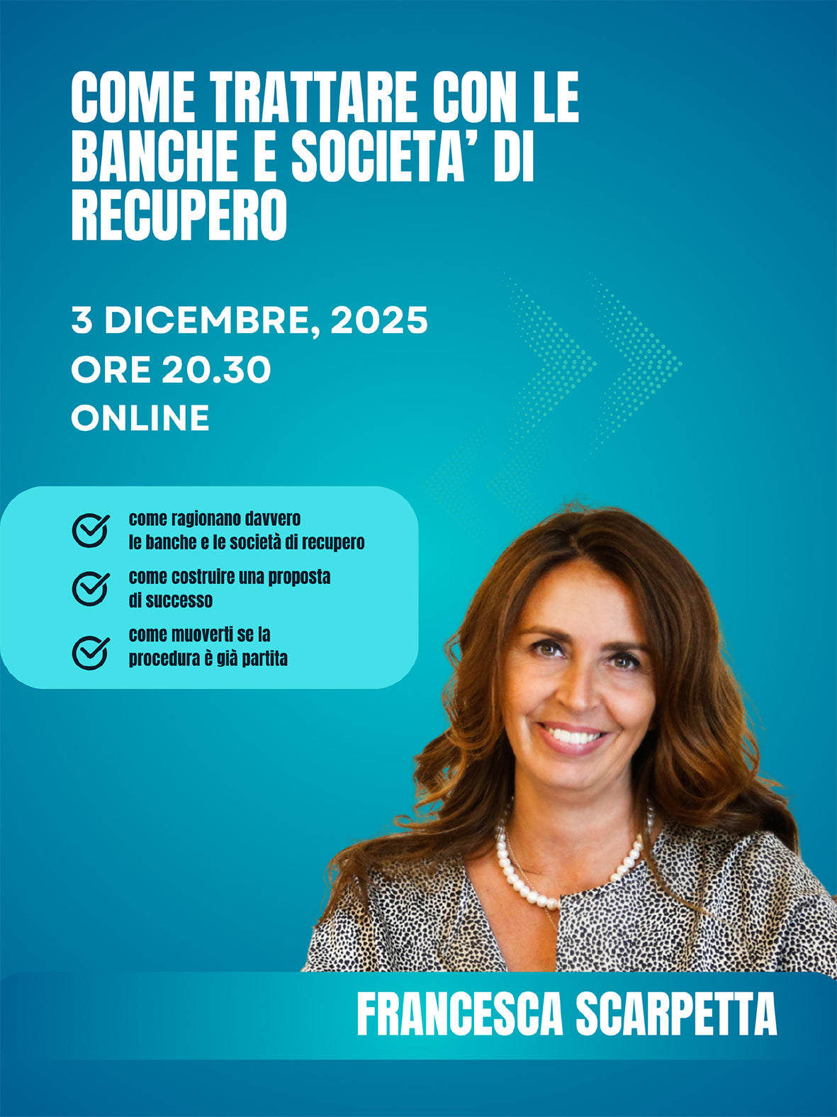 Webinar Live – Come trattare con banche e società di recupero per ottenere uno stralcio davvero conveniente